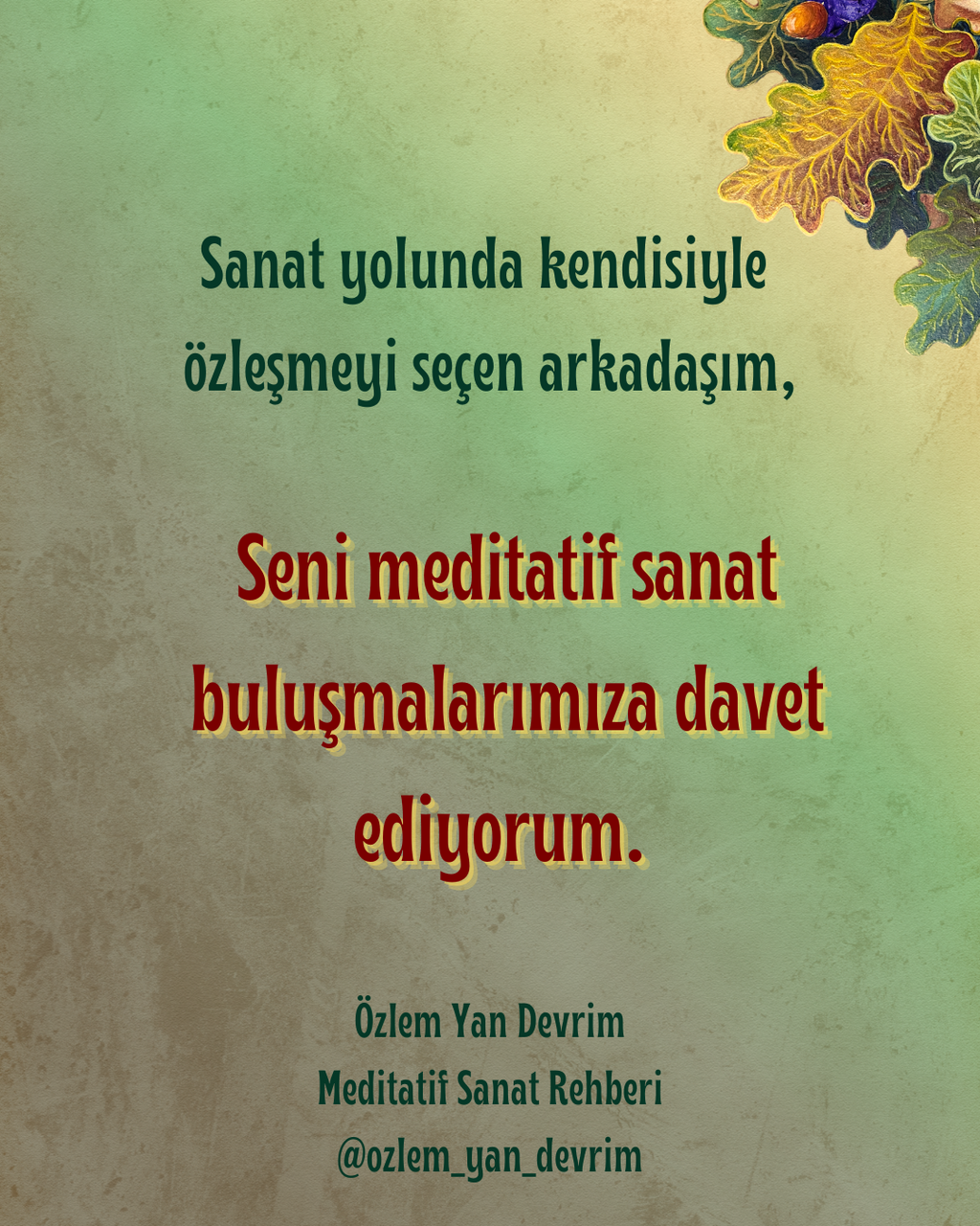 Bu buluşma bir eğitim programı değildir. serbest sanat yaratımlarınızla özümüzle bağlantı kurma zamanıdır..