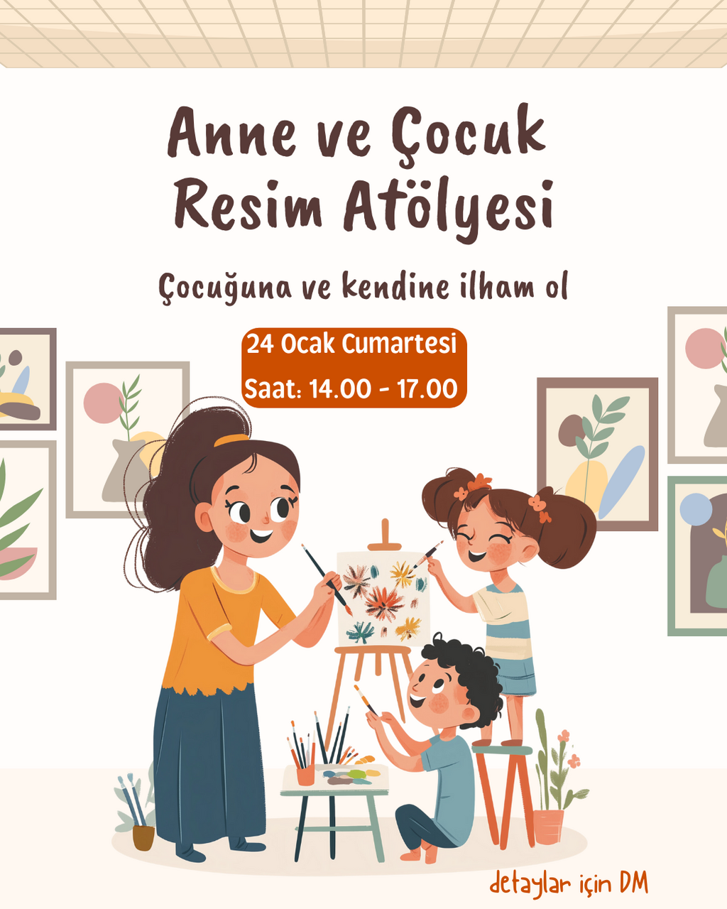 Sanat atölyelerim online canlı ve yüz yüze canlı grup katılımıyla resim atölyemde gerçekleşmektedir. Özel ders veya kendi grubunuzla atölye ve resim kursu talepleriniz için mail veya instagramdan iletişime geçebilirsiniz.