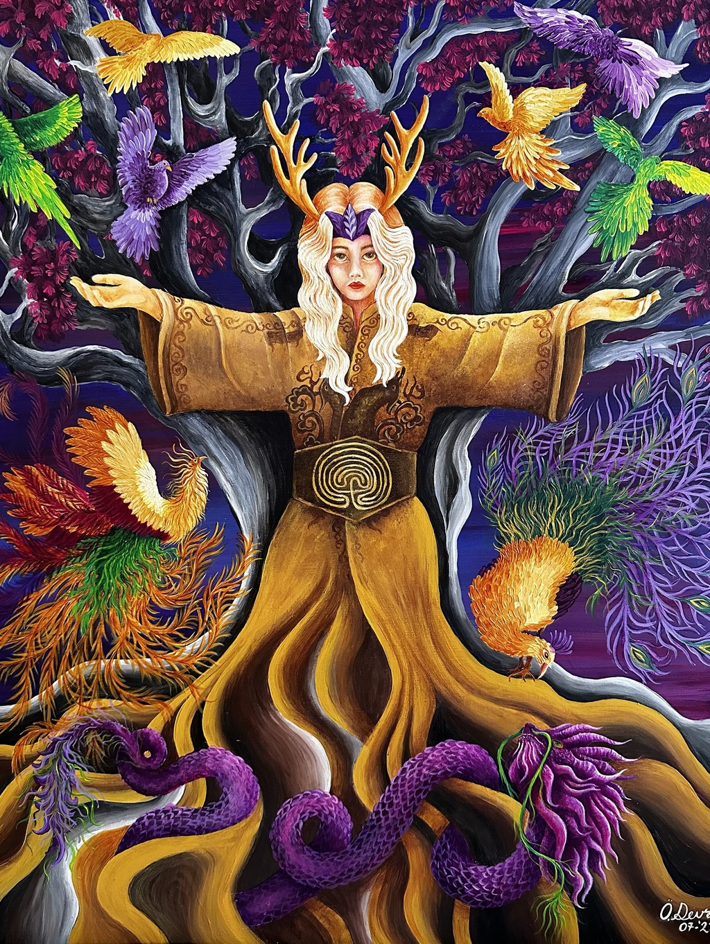 El yapımı tuval (54x65cm) üzerine akrilik boya eserlerimdir. Konular farklılık göstermekle birlikte ağırlıklı olarak spritüel, meditatif, fantastik kurgu ve masalsı anlatımlardır.